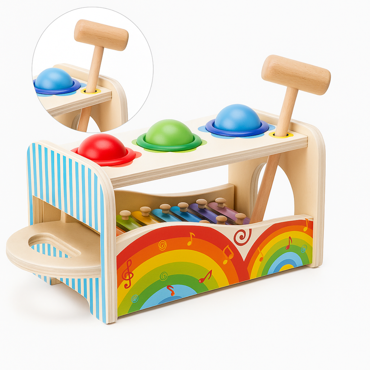 Favorece motricidad fina, concentración y exploración sensorial, transformando cada golpe en aprendizaje.